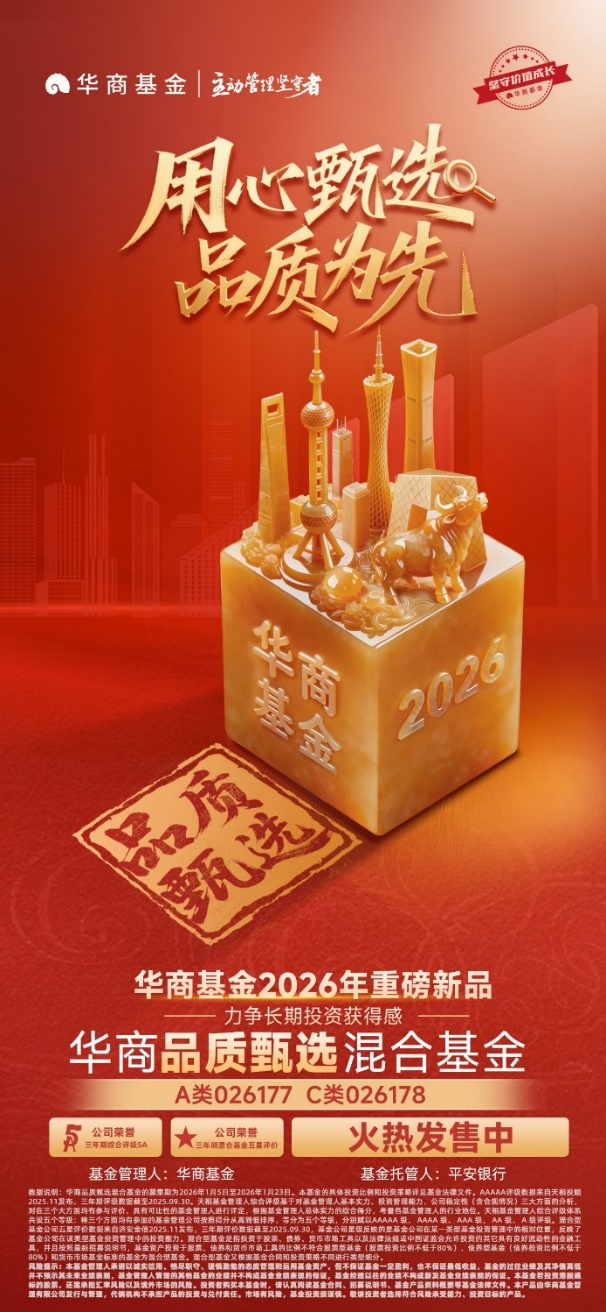 市场瞬息万变,唯有结合不同的市场环境,不断寻找价值低估资产,才能跟上时代。荣获第22届基金业金牛奖“主动权益投资金牛基金公司奖”的华商基金,于2026年开年推出全新力作――华商品质甄选混合基金(A类:026177,C类:026178)。该产品拟由华商基金研究发展部总经理助理叶峰管理,秉承“坚守价值、拥抱变化、动态平衡”的核心投资理念,致力于为持有人创造长期可持续的回报。